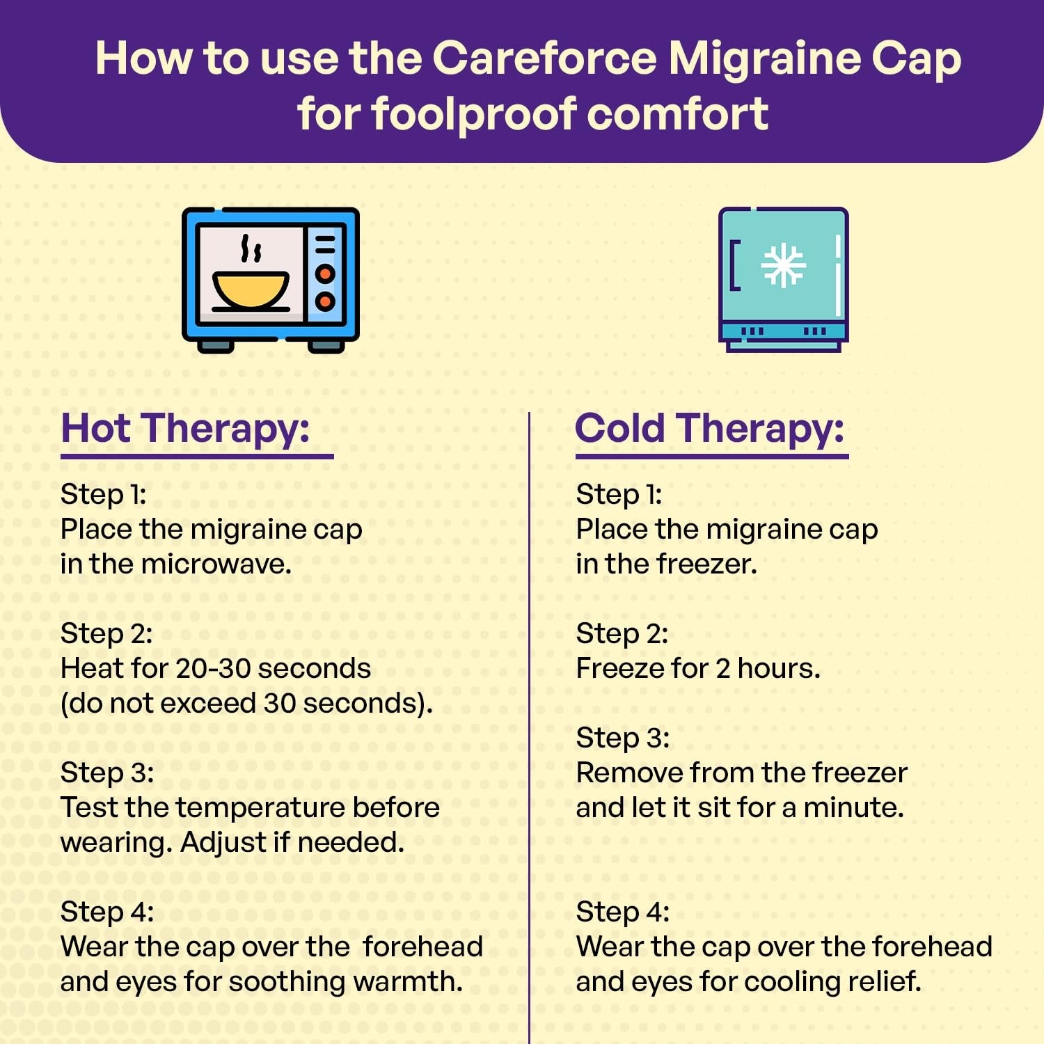 The cap uses cold compression therapy to constrict blood vessels and reduce inflammation, which helps ease migraine and headache pain. It also creates a calming effect that can relieve tension and stress.